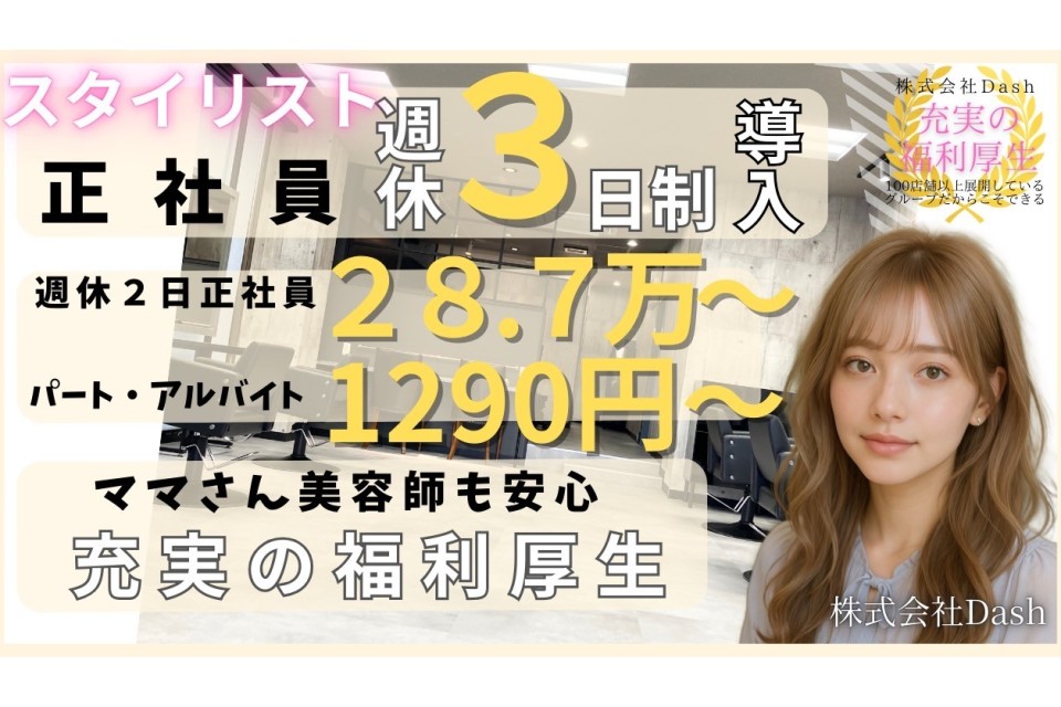 みなみ野>社員スタイリスト完全週休2日28.7万円~業界初完全週休3日導入/ノルマ無/社保◎